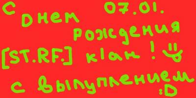 | GreeN_p1ece, сделай мне ) фон любой, но желательно розовый или фиолетовый, ну что бы яркий был очень, и там написать STRF.clan.SU for krim